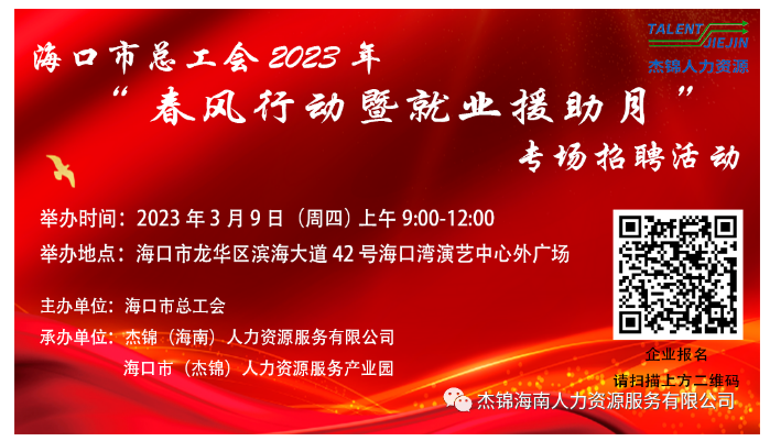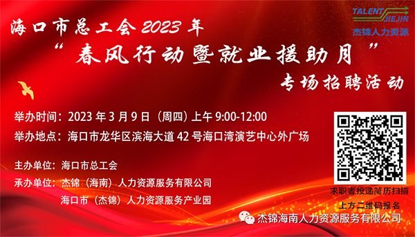 6月24日上午9時-12時,由海口市龍華區(qū)人力資源和社會保障局、海口市(龍華)人力資源服務產(chǎn)業(yè)園主辦,杰...